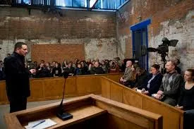 In the summer of 2012 the punk activists Pussy Riot were sentenced to two years’ imprisonment in a penal colony. This was only the latest episode in a ten-year series of trials implicating artists and dissidents within Putin’s system. In The Moscow Trials, Rau draws on the techniques of political theater to explore this issue. In March 2013, a courtroom was set up in Moscow to provide a stage for a show trial that pitted the different sides of the Russian cultural war against each other. The trial was stormed by the Russian authorities and by units of the Cossacks and led to an international scandal. The film documents the project and illuminates the historical and political situation. (Various languages with English subtitles.) (90 min)